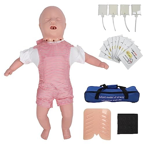 Resuscitation Manikins: DEHIWI Infant CPR Training Manikin, Size 57*25*17cm, simulates airway obstruction, chest compression. PVC, die-cast, realistic, durable. For clinical, nursing schools. Includes CPR towel and foreign body module.