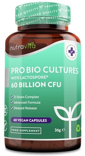 Bio-Cultures Probiotics. 180 high strength capsules provide a six-month supply. Five effective strains. Each capsule has 1 billion viable organisms. Made in the UK, suitable for vegetarians.
