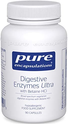 Pure Encapsulations Digestive Enzymes Ultra offers a broad-spectrum of vegetarian digestive enzymes for protein, carbs, fat, fibre, and lactose digestion. Take 2 capsules per meal. Free from allergens and GMOs.