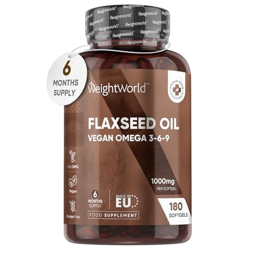 Get your daily essential fatty acids with our vegan flaxseed oil softgels. Each 1000mg capsule provides Omega 3, 6, and 9. Contains 180 capsules, cold-pressed for maximum nutrient retention.