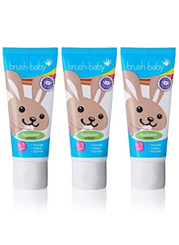 Brush-Baby Applemint Toothpaste is ideal for Baby and Child Dental Care. Perfect first toothpaste for babies aged 0-36 months. Gentle applemint flavour, lower fluoride (1000 ppmF), SLS-free, vegan-friendly.
