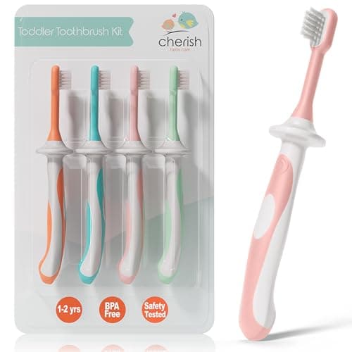 Cherish Baby Care Toddler Toothbrush Set in 4 bright colours ensures Baby and Child Dental Care. Designed by paediatric dentists, safe & gentle with ultra-soft bristles, easy for tiny hands to hold. Suitable for 1-2 years.