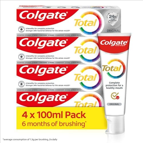 Colgate Total Original Toothpaste provides superior bacterial defence for your entire mouth. With dual zinc technology, it guards against cavities, plaque, tartar, and sensitivity, while keeping your smile healthy.